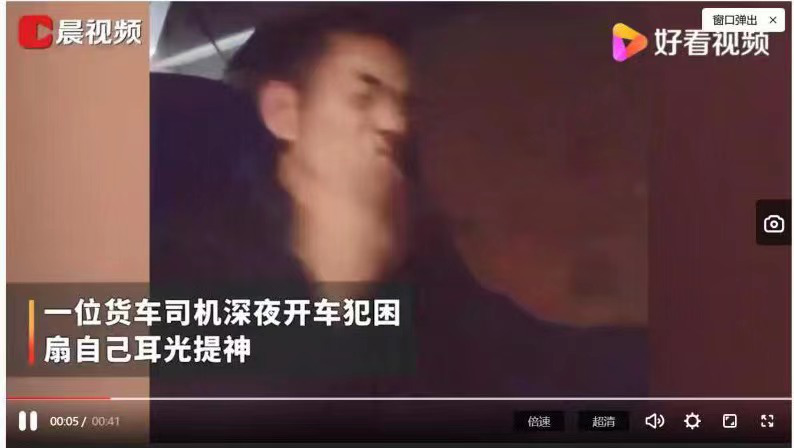 有人開著貨車,怕自己犯困,猛扇自己耳光提神。