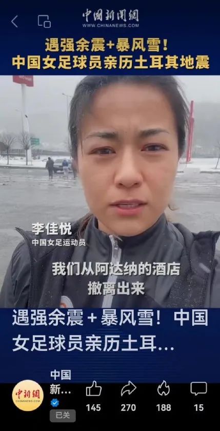 同樣驚魂未定的,還有我們的女足隊員李佳悅。