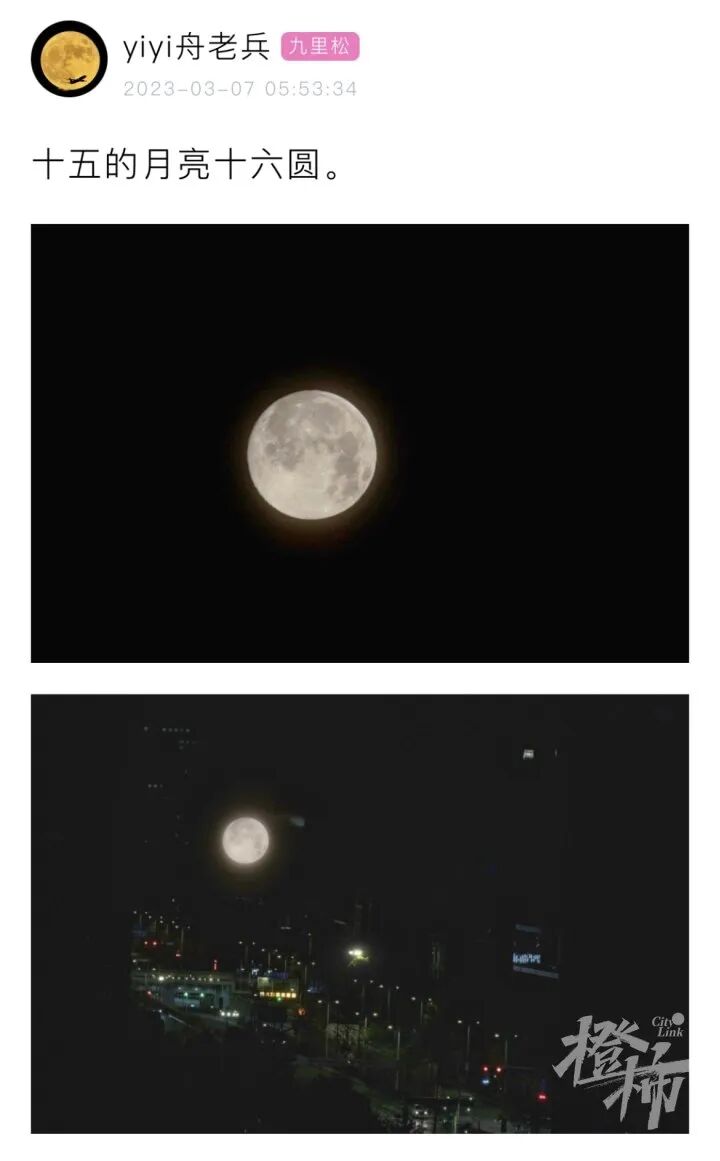 不過,不管月亮是十五圓還是十六圓,就肉眼觀測來說,區別不大。昨天,圓圓的月亮已經刷爆了橙友圈。