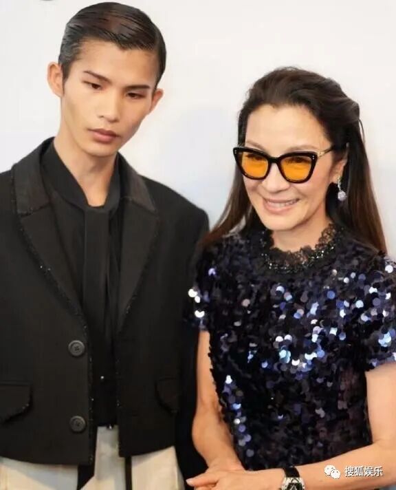 楊紫瓊身穿波光亮片連衣裙,搭配超酷眼鏡,時尚張力拉滿。