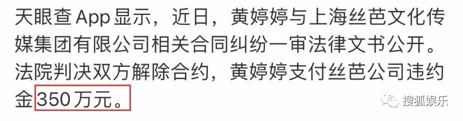 最終,法院判決雙方解除合約,黃婷婷支付絲芭公司違約金350萬元。