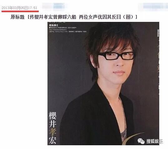 而在更早之前,櫻井孝宏2013年就曾被曝光過“腳踏六條船”的新聞。