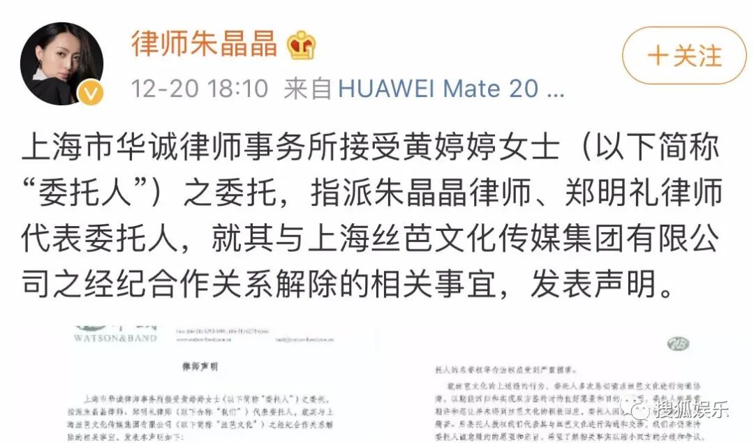 早在2019年底,黃婷婷發文宣佈與絲芭解約。
