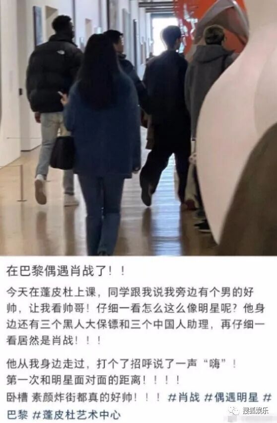 還有網友在蓬皮杜藝術中心偶遇肖戰,他身穿深色大衣搭黑框眼鏡,正在看展。