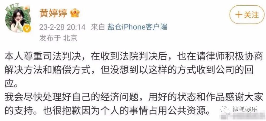 對此,黃婷婷曾回應稱自己在請律師積極協商解決方法和賠償方式,會盡快處理好自己的經濟問題。