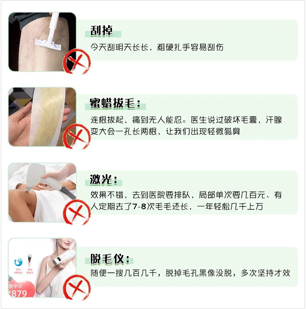 我們對夏天脫毛產品的首選,就應該是這樣:脫得乾淨、長得慢、皮膚嫩嫩!
