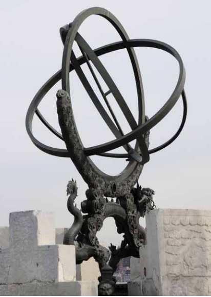 位於北京古觀象臺臺頂的赤道經緯儀。赤道經緯儀設計上參考了 16 世紀歐洲著名天文學家第谷的天文儀器。儀高 3.380 米,主要用來測量天體的赤道經度和緯度以及真太陽時