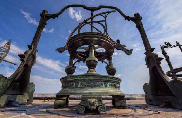 璣衡撫辰儀,儀重 5145 千克,儀高 3.379 米,現位於北京古觀象臺臺頂。乾隆九年(1744),乾隆皇帝到觀象臺,看到臺上的儀器都是西洋的構造和制度,遂下令欽天監按照渾儀的制度、西法的刻度鑄造一架中西合璧的新儀,璣衡撫辰儀被譽為“大型青銅古典天文儀器的最後傑作”