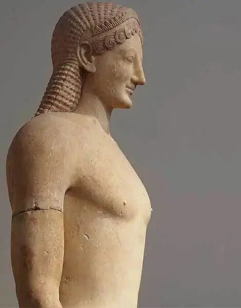 而在《時尚的希臘課》的最新一期內容中,羅彤老師則講述了在古希臘文明中十分重要卻又鮮為人知的雕塑藝術形式Kouros——據說,古希臘人從埃及人那裡學來了用大理石雕刻大型人體雕像的技術,於是公元前七世紀起,希臘出現了大批年輕男子或女子的雕像,這些雕像中尤以年輕男子的雕像最為具有代表性。