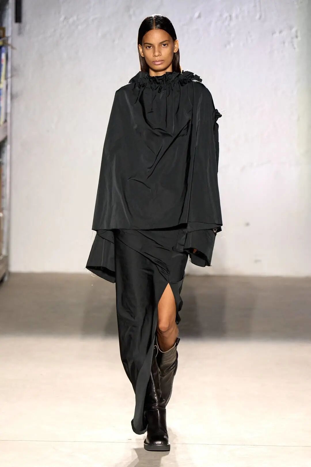 MM6 Maison Margiela的2022秋季成衣系列,Hunter單穿上衣搭配黑色長靴,適當的留白也讓造型看上去輕盈了不少,還平添了幾分率性酷感▼