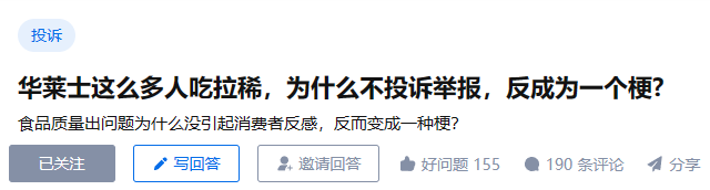 問題上方的分類僅標著“投訴”,暗示這應該是一個嚴肅的食品安全話題。