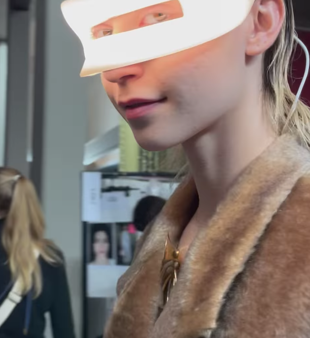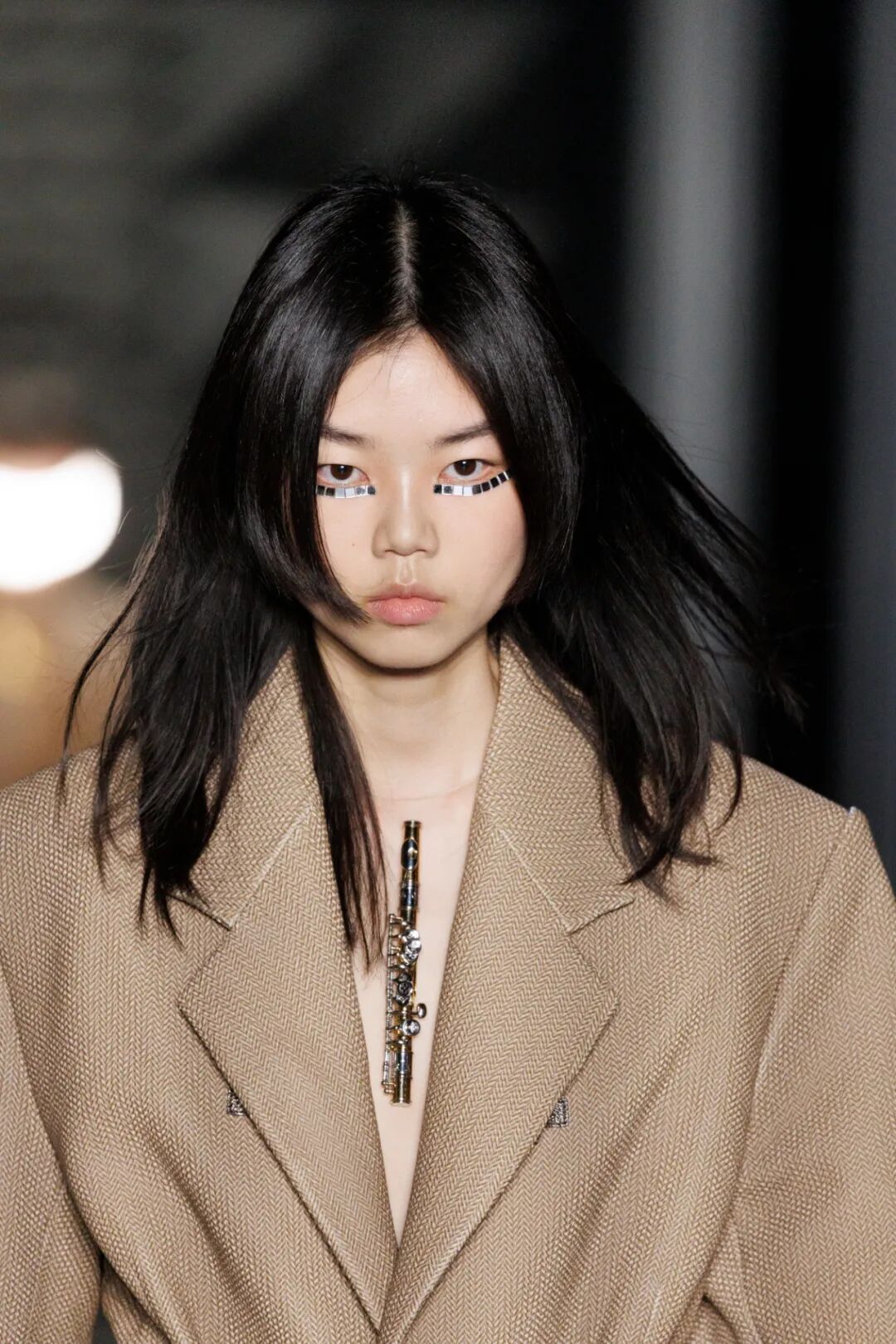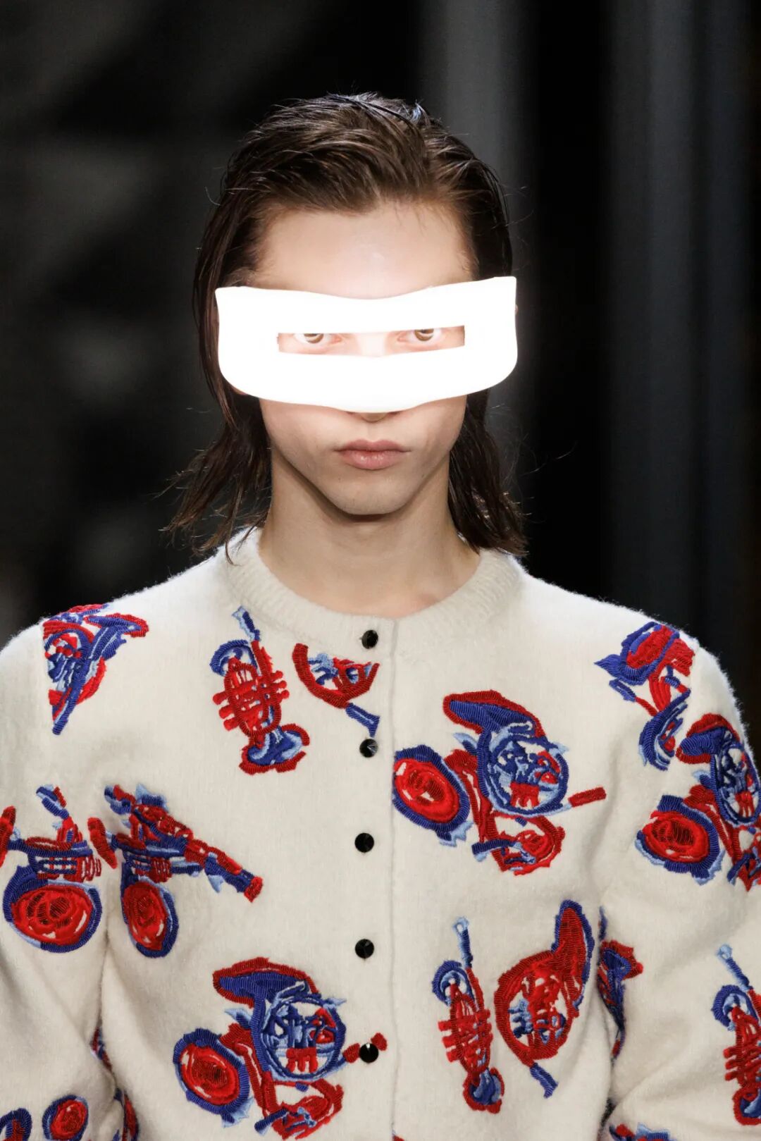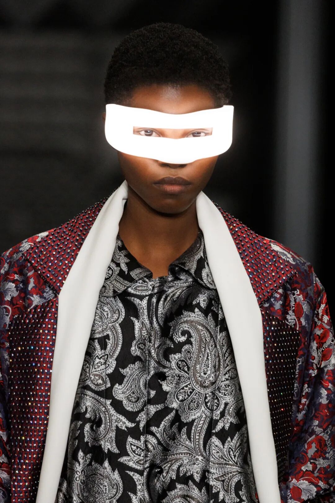而夜光眼鏡,是整場大秀裡最為科技的部分。它與墨鏡相反,帶著光暈與力量,在T臺上熠熠生輝。