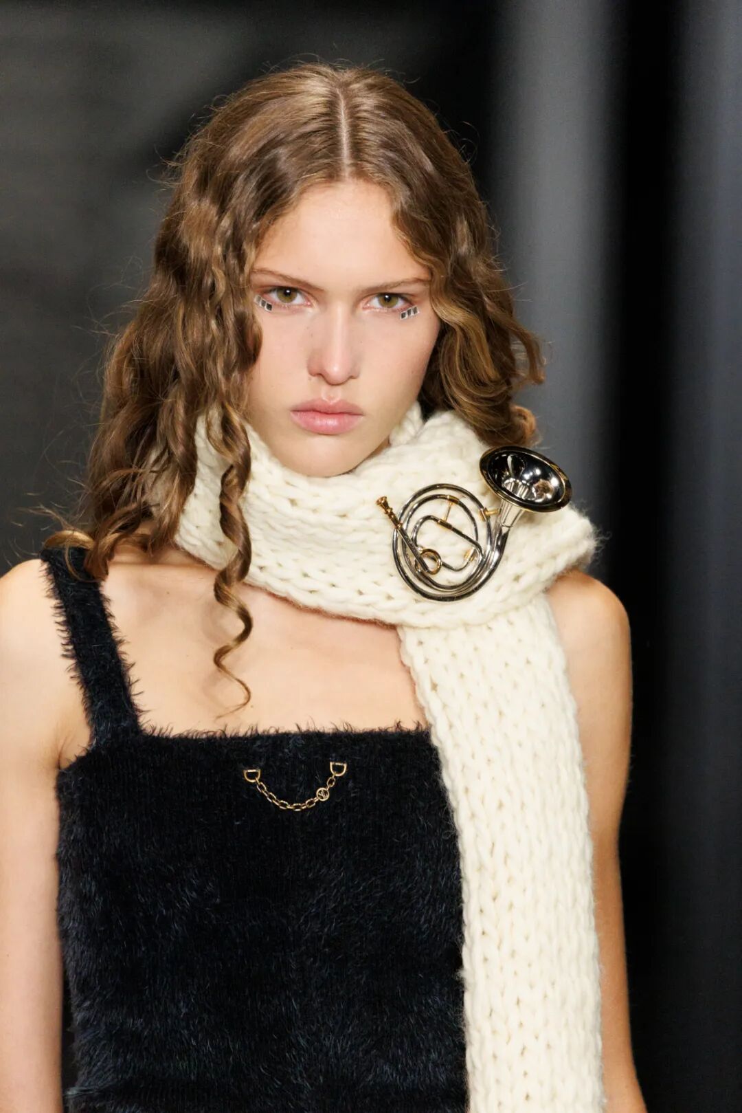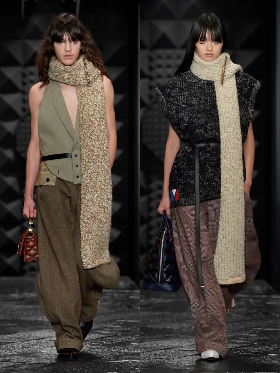 大量的長腰帶與長款圍脖,展現了Nicolas Ghesquière借用延長手法反襯女性的身材比例。