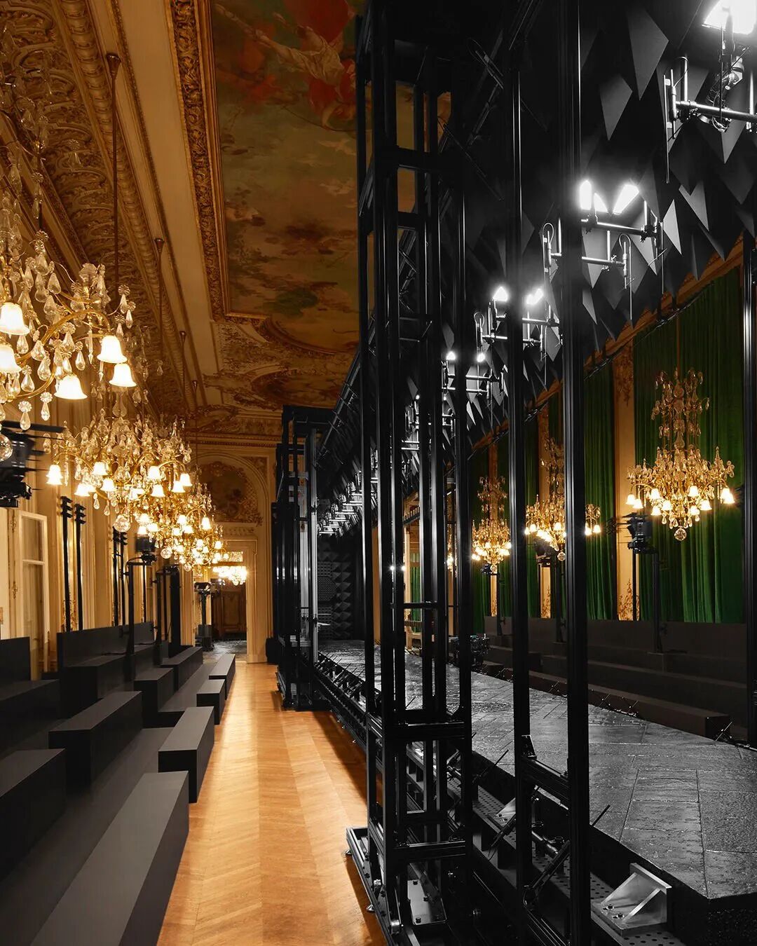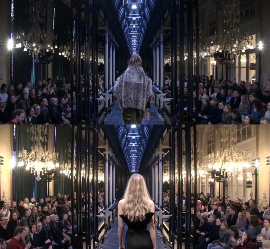 為了營造真實的法國街景,秀場背景音樂融合了咔嗒走路聲、來往警笛聲摩托聲、熱鬧市集人聲甚至狗吠鳥鳴。聯合法國藝術家Philippe Parreno 設計的忽明忽暗光線,構建出多感官下的巴黎幻境。