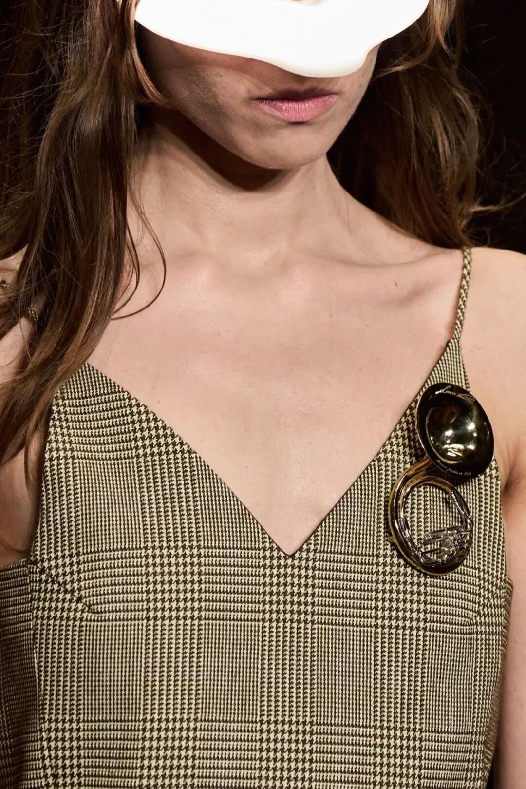 樂器圓號作為配飾也幾乎貫穿了整場秀,它可能是項鍊也會是胸針。要知道圓號還有另一個稱謂,叫做法國號。