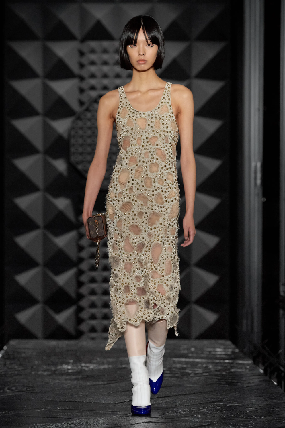 西裝配合晚裝裙,這種正式場合的穿搭公式被Nicolas Ghesquière模糊,將搭配融入日常生活裡。