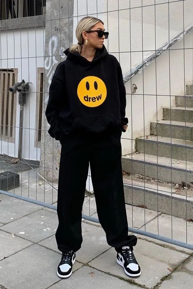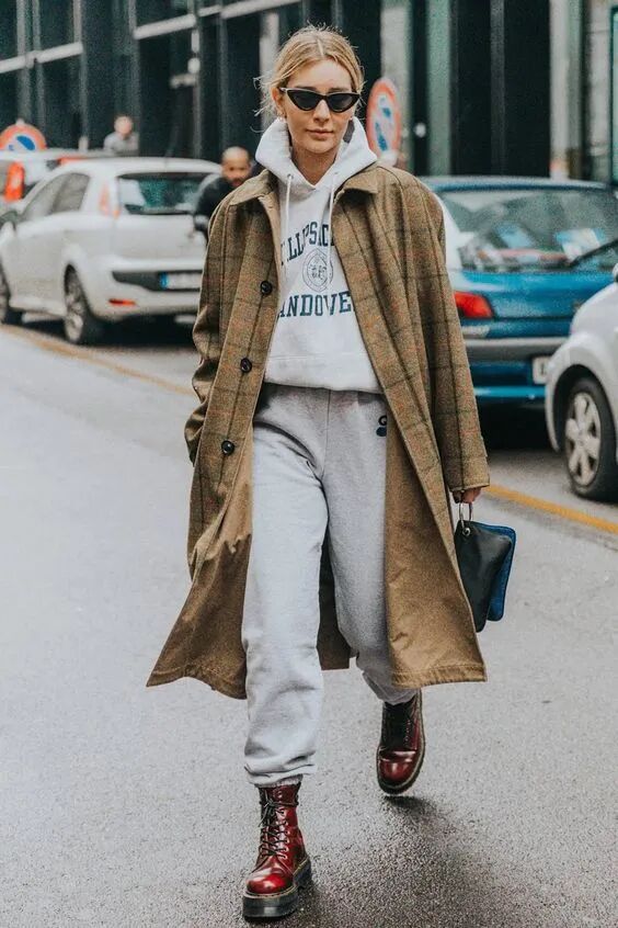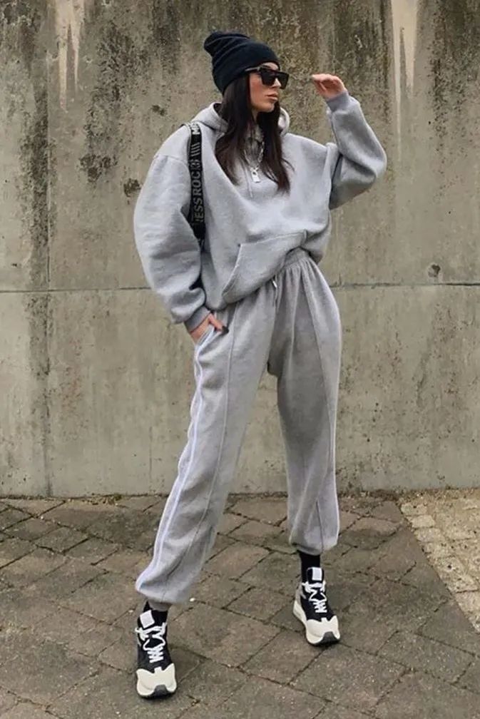 灰色衛衣套裝自帶酷颯氣場,適合個子高的姐妹,而且比較耐髒。