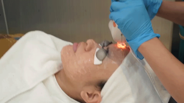然後就正式開始打啦,醫生首先給我用的Zoom激光手柄,斑點紋身都能去除。
