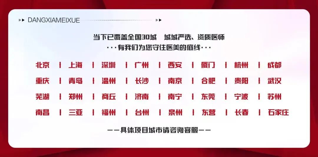 現在和各個城市的美容機構合作,都是嚴格篩選後的正規醫院正品美容儀器,安全有保障。目前30多個城市都有合作美容院: