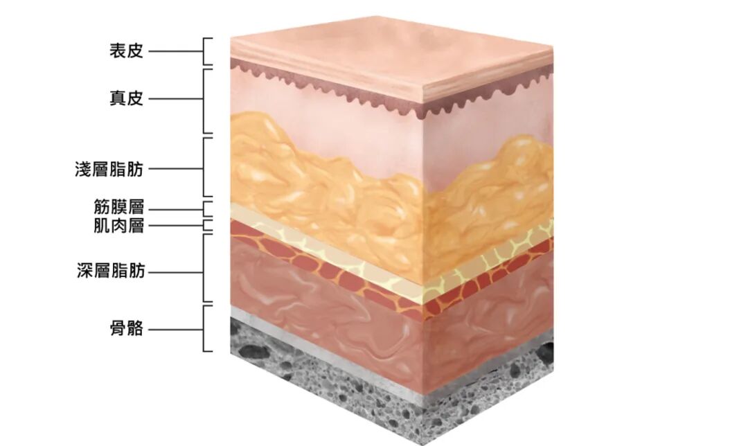 作用層次有三個:【4.5mm 】治療頭,作用在SMAS筋膜層,主要是收緊提拉。【3.0mm】治療頭,作用在淺層脂肪層,用於壓實輪廓+溶脂。【3.0mm-】的治療頭,作用在真皮層,刺激膠原蛋白再生,讓臉有嘭嘭的飽滿感。