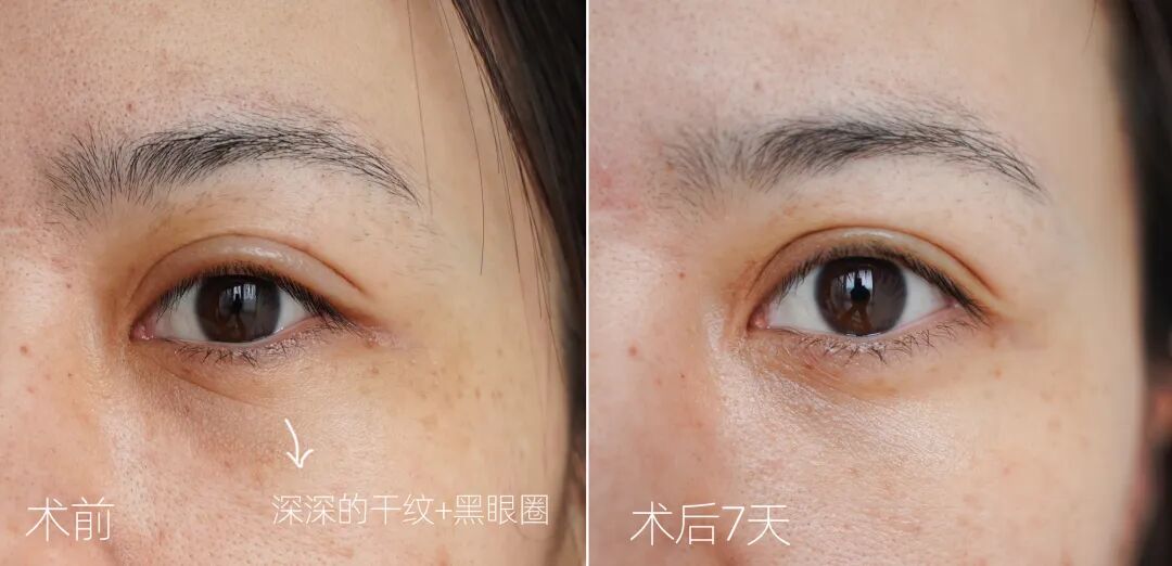 有黑眼圈、眼紋困擾的姐妹,記得順便讓醫生幫你手打一下眼周!看一下我打完後的效果,頑固的眼下紋都飽滿了不少,黑眼圈瞬間變淡好多~