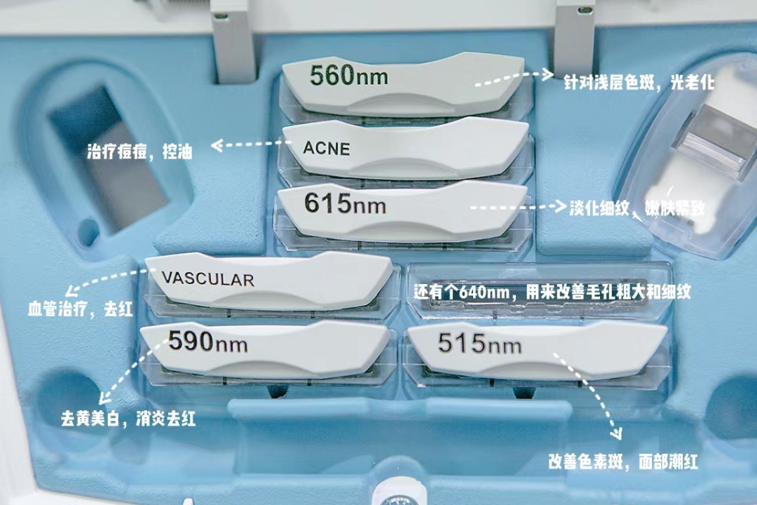 總共三個手柄及三個波長深度,不僅能祛斑,還能讓皮膚變得更加通透。(覆蓋了部分光子嫩膚的作用)