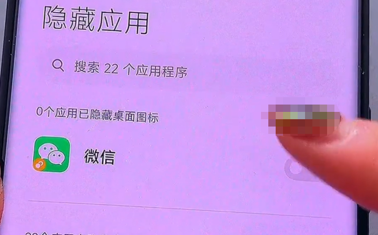 如果說你還想隱藏其他的應用,就可以根據自己的需求去選擇,然後我們返回到桌面看一下,這樣在我的手機桌面只能看到這一個微信,另一個微信就被我隱藏起來了,我們想要找到的時候,就可以根據它的提示,雙指在手機上滑一下,這樣就可以進入隱藏的應用。
