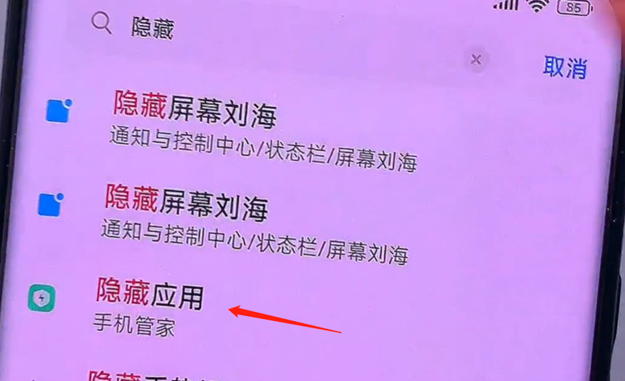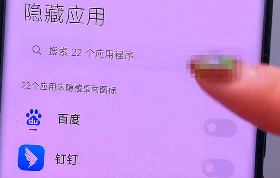 還有一個功能就是說假如我們的手機上下載了一些比較私密的軟件,你不想被別人看到,我們應該如何把這款軟件給它隱藏起來?我們也是可以打開設置,在上方搜索框這裡面輸入隱藏,這時候就可以看到這個隱藏應用,我們只需要點擊一下它就會,進入這個設置的界面,