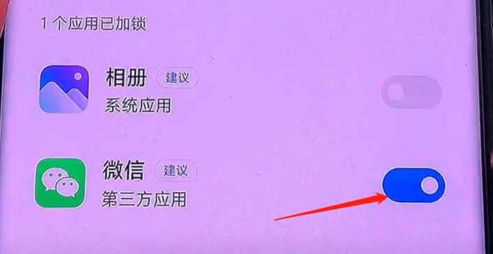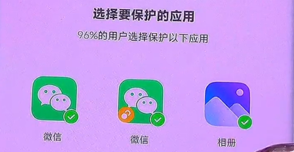 我們就可以根據自己的需求選擇一款你想要加密的軟件,比如說我們可以選擇一個微信和一個相冊,我們就可以勾選以上兩個想要加密的應用。