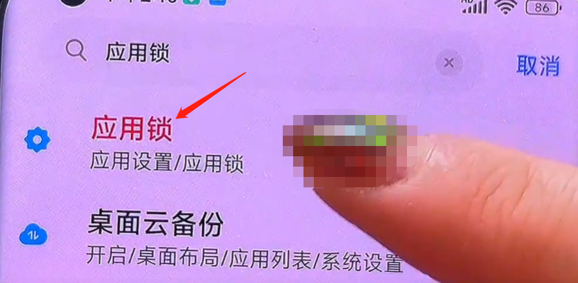 首先,我們需要打開手機的設置。然後我們在上方搜索框這裡面輸入應用鎖三個字,然後在下面就會出來應用所相應的設置,