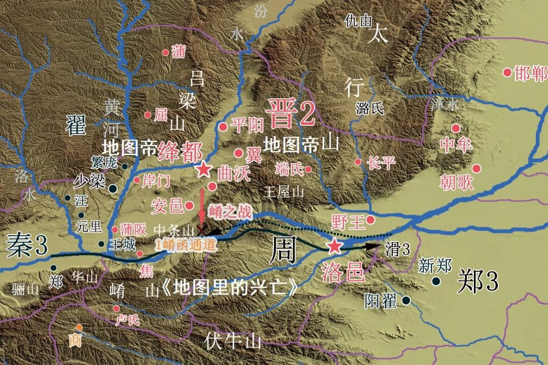 從地勢上講,崤函通道是太行山南部一段東西走向的山體與秦嶺合夾而成的一條走廊,該走廊與黃河流向一致,而黃河北岸正是河東。因此從理論上說,只要河東仍被晉國控制,任何想要進出崤函通道的軍隊都會遭到晉軍的前後夾擊。