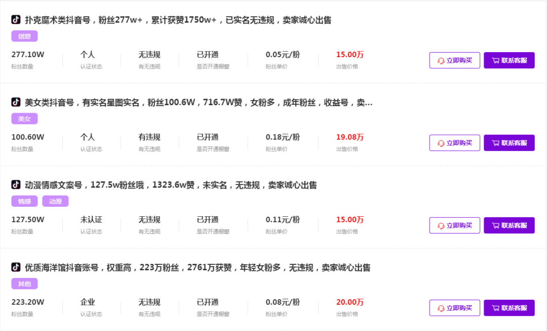 更爽的是,就算以後不打算做抖音號了,轉手一賣又是一筆不錯的收入!