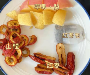 原料:蘋果1個(約300~400克)、山楂(幹品)15克、大棗10枚、粳米150克。