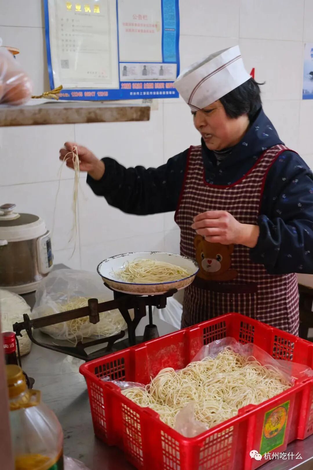 “沒見過我稱面吧,我們面都秤過的,三兩一碗,不能少客人的。這種面都是訂做的,叫潮面。”