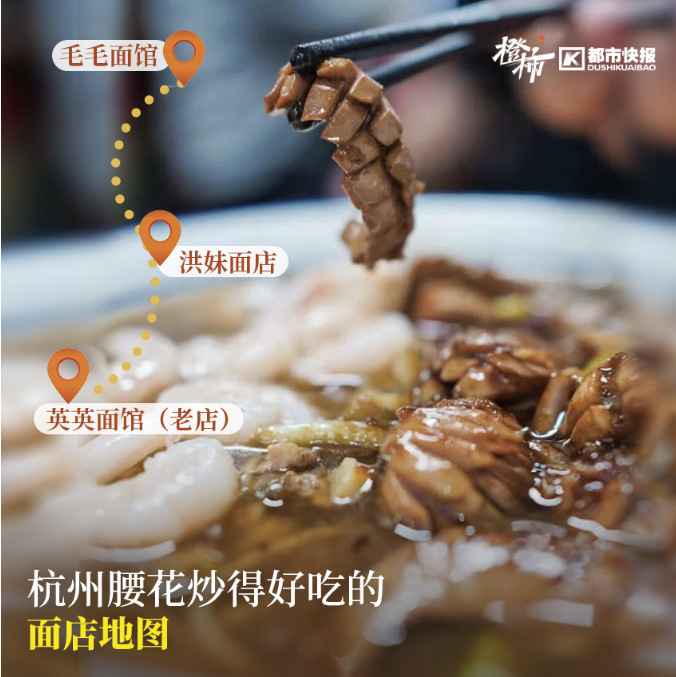 杭州超好吃的爆炒腰花,一大半在麵店裡。