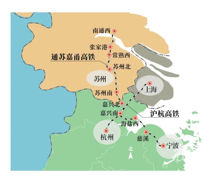 通蘇嘉甬高鐵不僅拉近了寧波與上海、蘇州的距離,也讓杭州開往蘇州、無錫方向的高鐵列車不用再繞行上海,縮短運行距離。