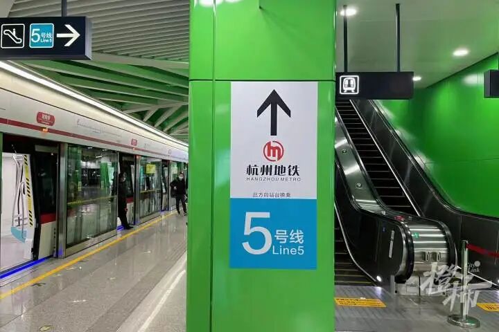 到姑娘橋站下車後,坐電梯可以同站換乘杭州地鐵5號線。