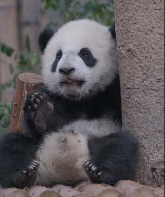 7個月殘疾大熊貓被3名女遊客潑水後躲在角落,基地回應橙柿互動