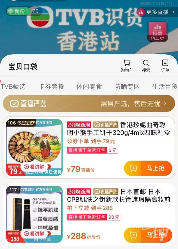 直播間的購物車顯示,昨晚一共上架128款商品,包含香港本土、生活百貨、服飾奢品、防曬專區、休閒零食等類目,直播一直持續到今天0點,果然是“愛拼才會贏”的TVB明星啊!
