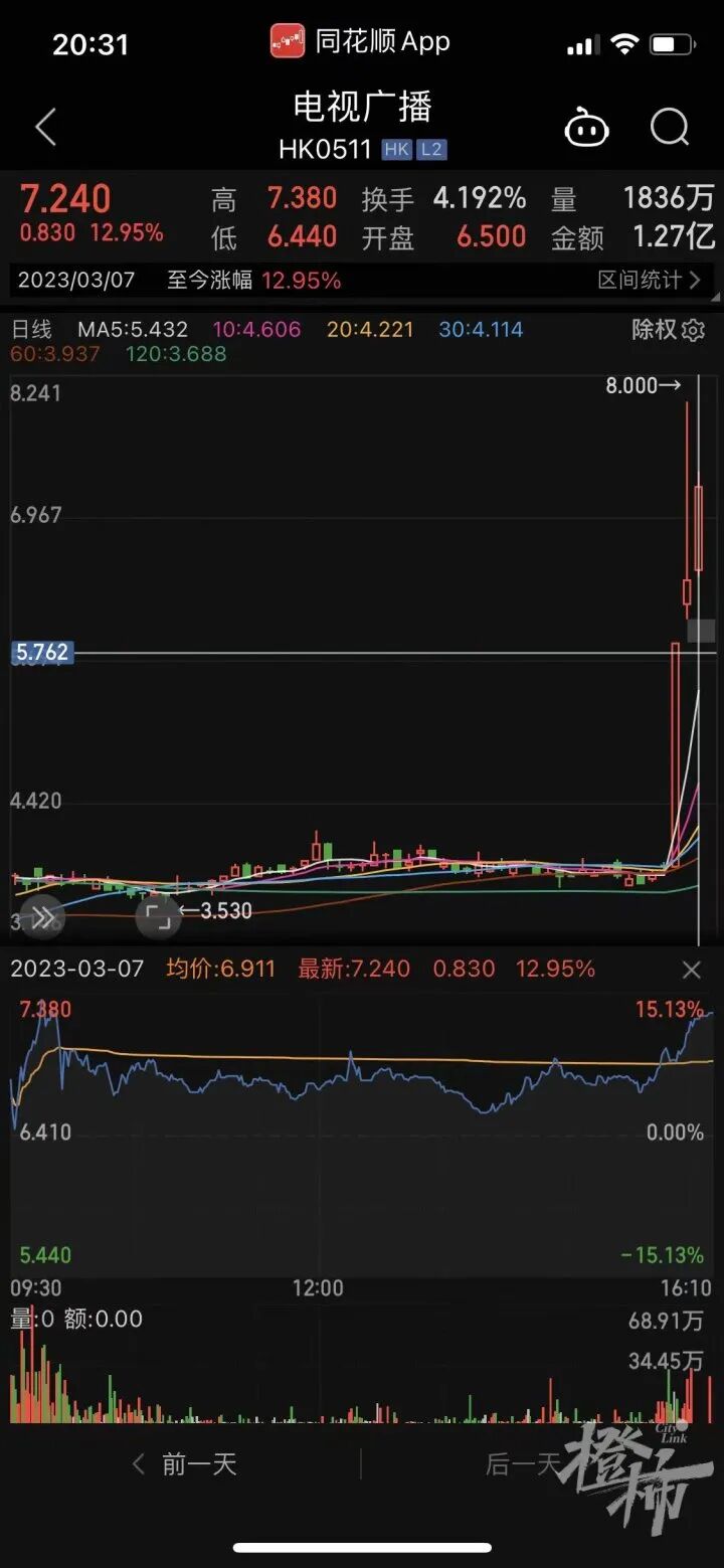 對於藝人到內地直播淘金的前景,TVB股價最有發言權。繼上週五暴漲51%之後,昨天電視廣播一度又漲了近36%,雖然大幅衝高回落但在今天還是收錄近13個點的漲幅。