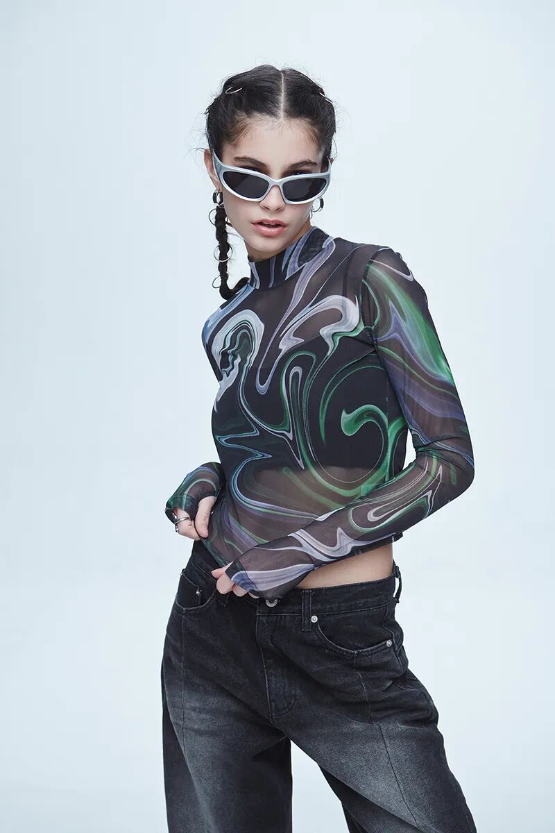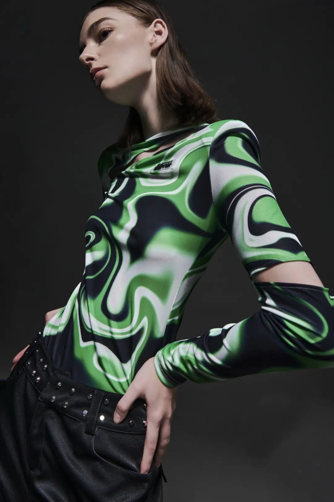 扭曲的色彩圖案呈現迷幻又奇特的視覺體驗,超自然的色彩圖案難以辨別,有極強的設計感,色彩斑斕的撞色印花豐富活力。