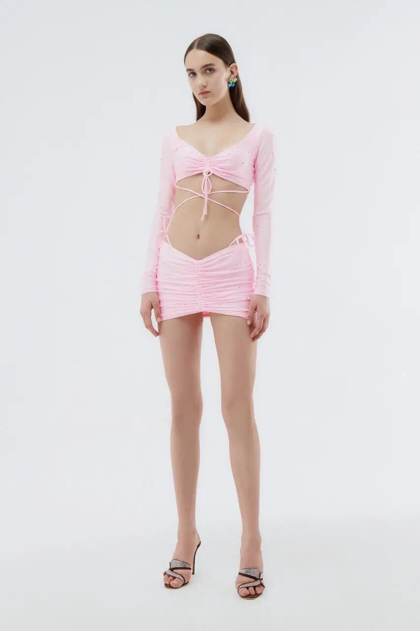 抽繩設計使家居服更具穿搭性,小小的抽繩能改變服裝形態。使領口及下襬的大小松緊可控。胸部的繩帶兼具功能性與裝飾作用,露出少女纖細腰肢。