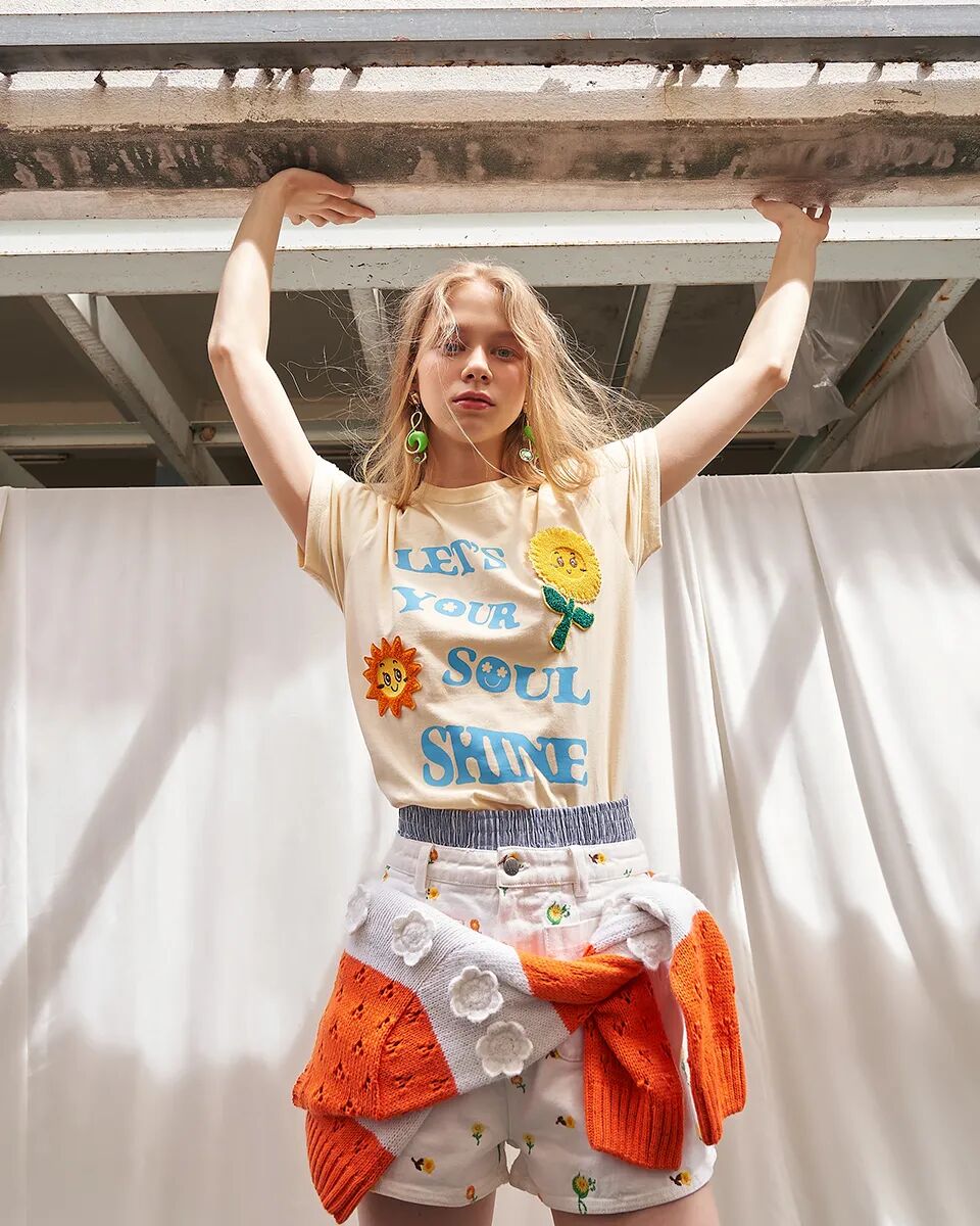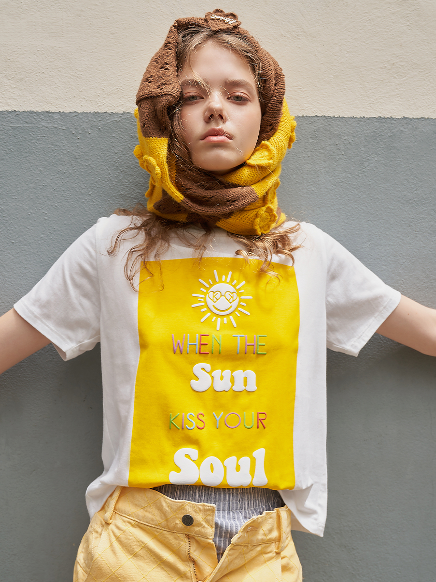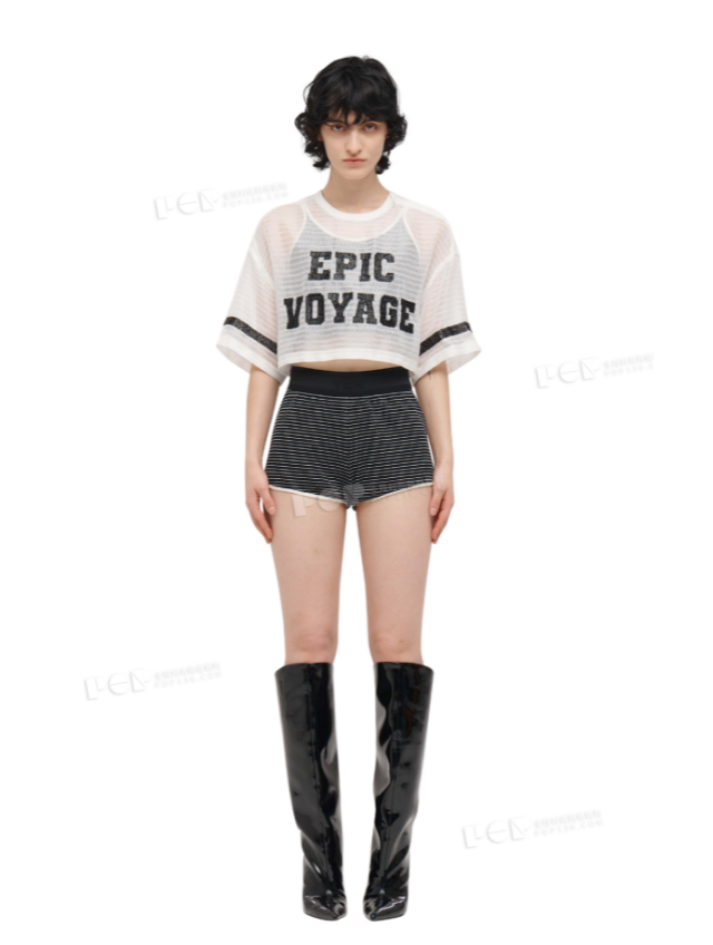 將數字化藝術與字母印花相結合,扭曲的字母造型 多樣化的印繡方式、趣味性的圖案元素與閃爍的亮片裝飾打造出新型潮流圖案。