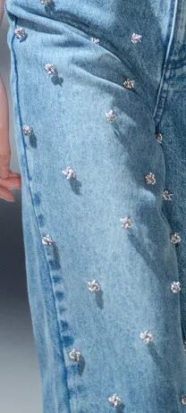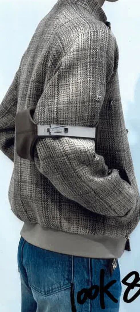 釘珠與針織技藝的組合,創造出全新的裝飾效果,在 T 恤、西裝領口與長褲上有規律地排列組合出現代美巧思。
