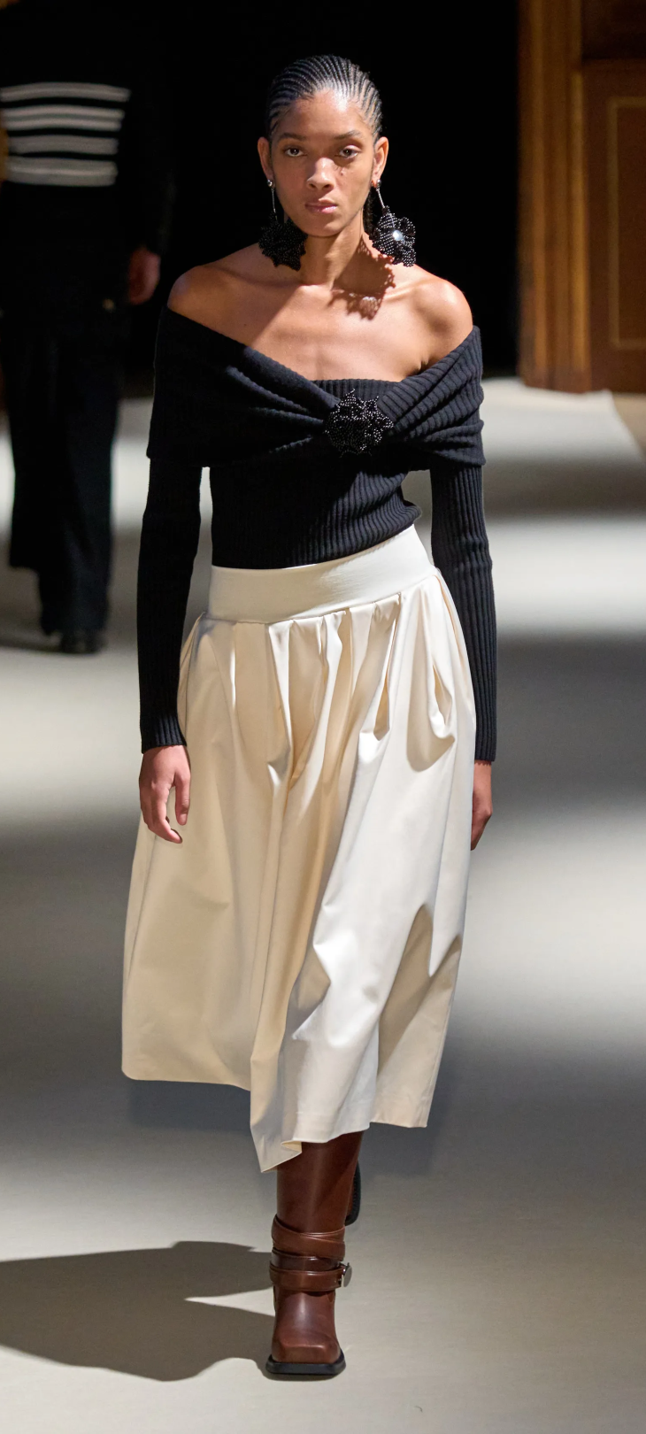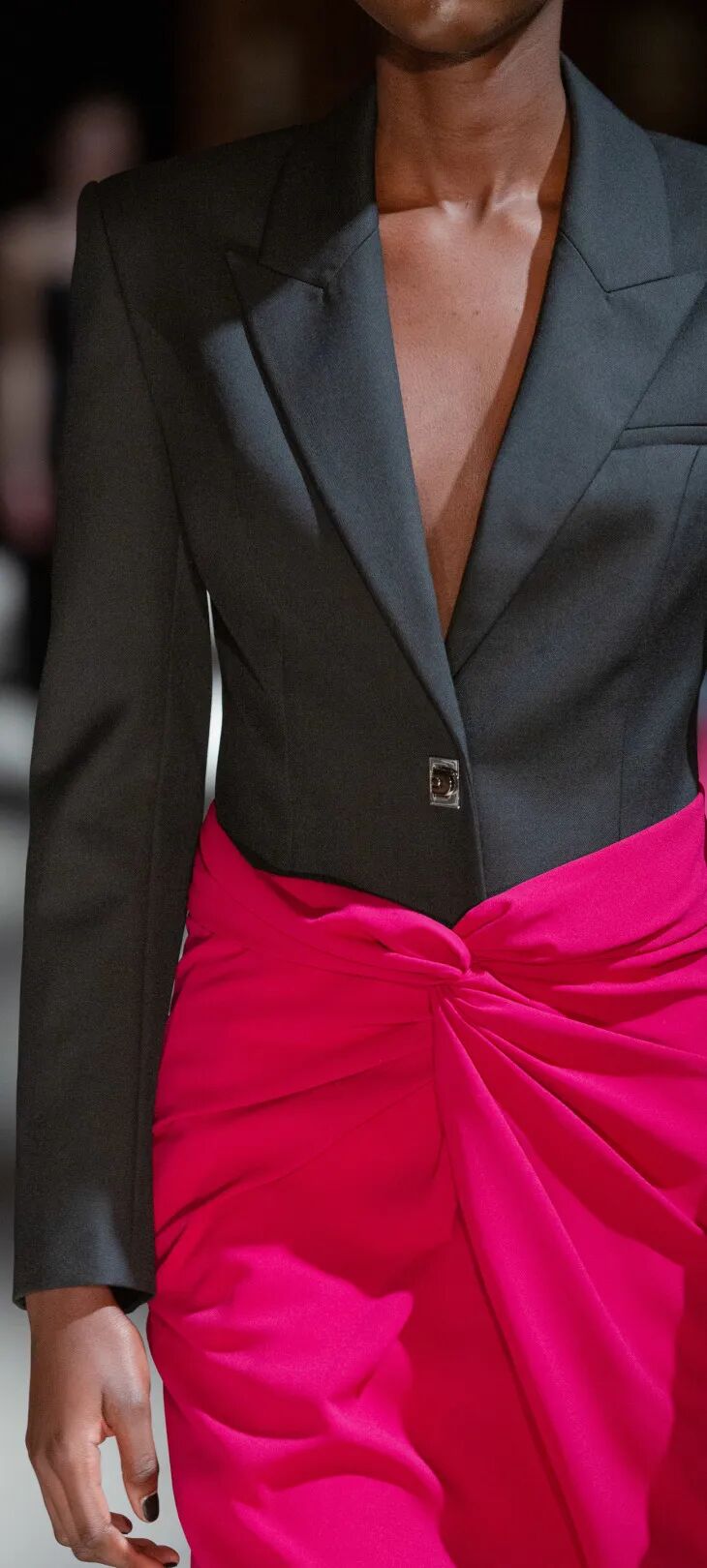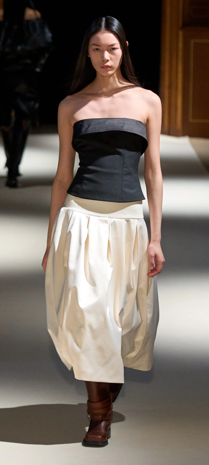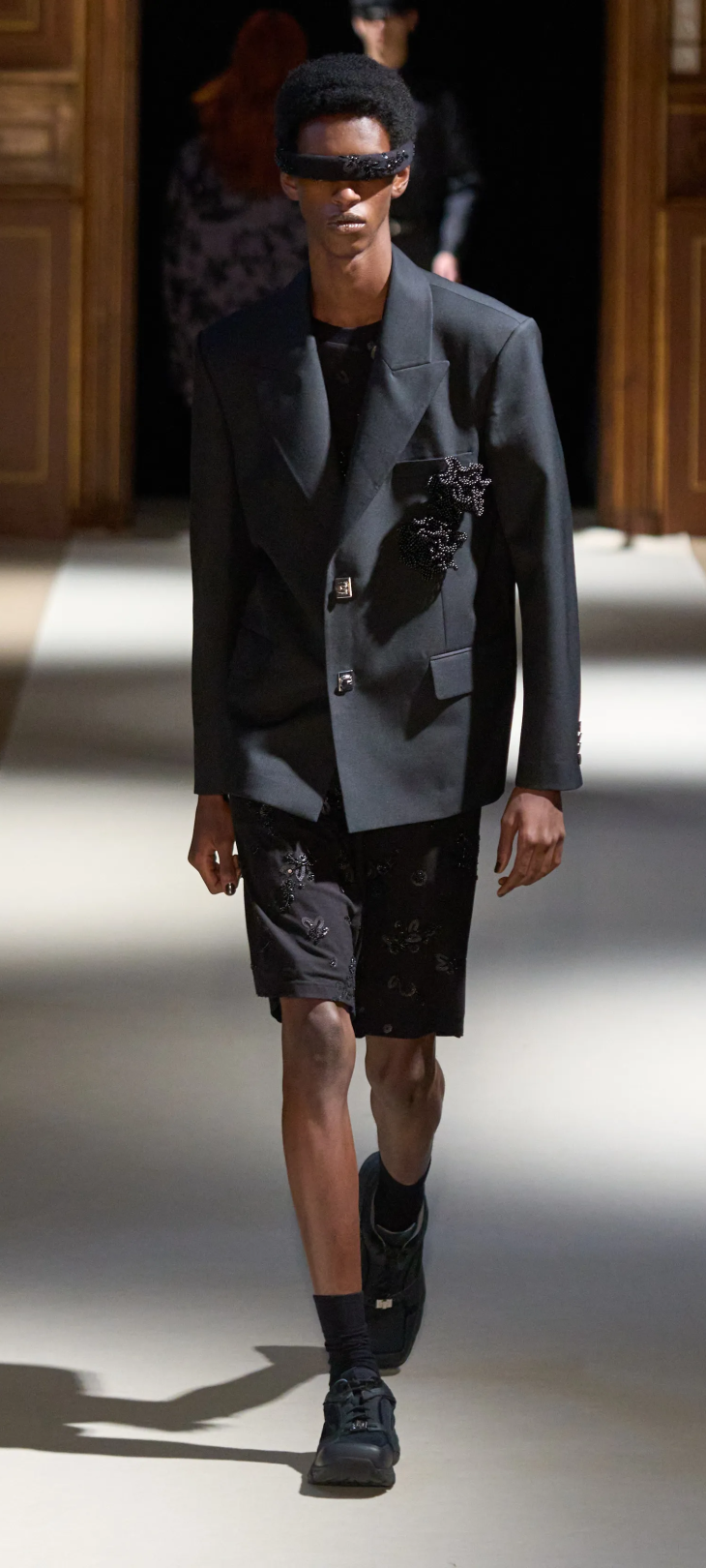 越是在不經意中盛放的花蕾越是迷人。品牌標誌性的黑色西裝與塔夫綢打造的花苞狀褶皺一起,通過針織面料完成了一場夢境與現實的聯結,定格腦海中浮現出的轉瞬即逝的美麗。