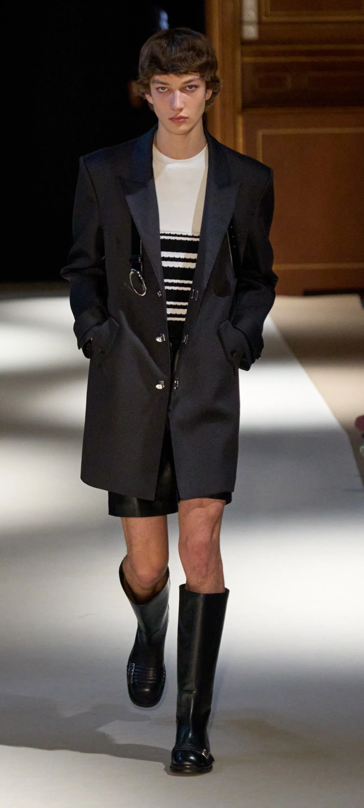 CALVINLUO 2023 秋冬系列包含男裝和女裝,廓形與裁剪沒有嚴格的性別界限。設計師試圖通過面料、工藝與廓形的組合,將柔美與鏗鏘合二為一。