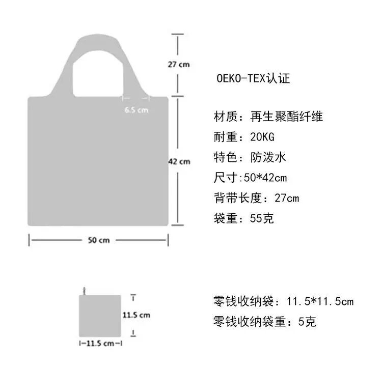 每個環保袋都有配有一個零錢包,既能用來收納環保袋,又能外帶裝一些小件物品!