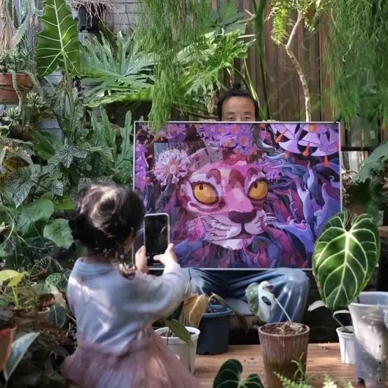 在這狂野生長的背景下,是粉紅虎充滿好奇與靈動的一面。