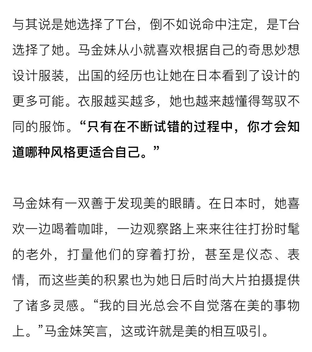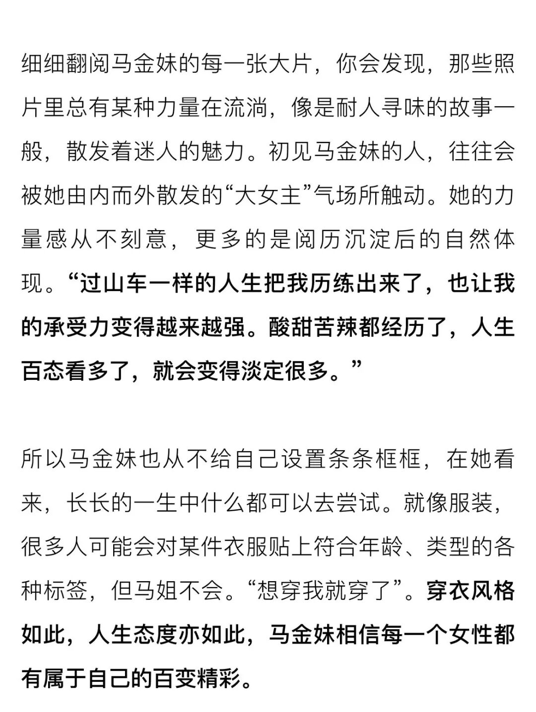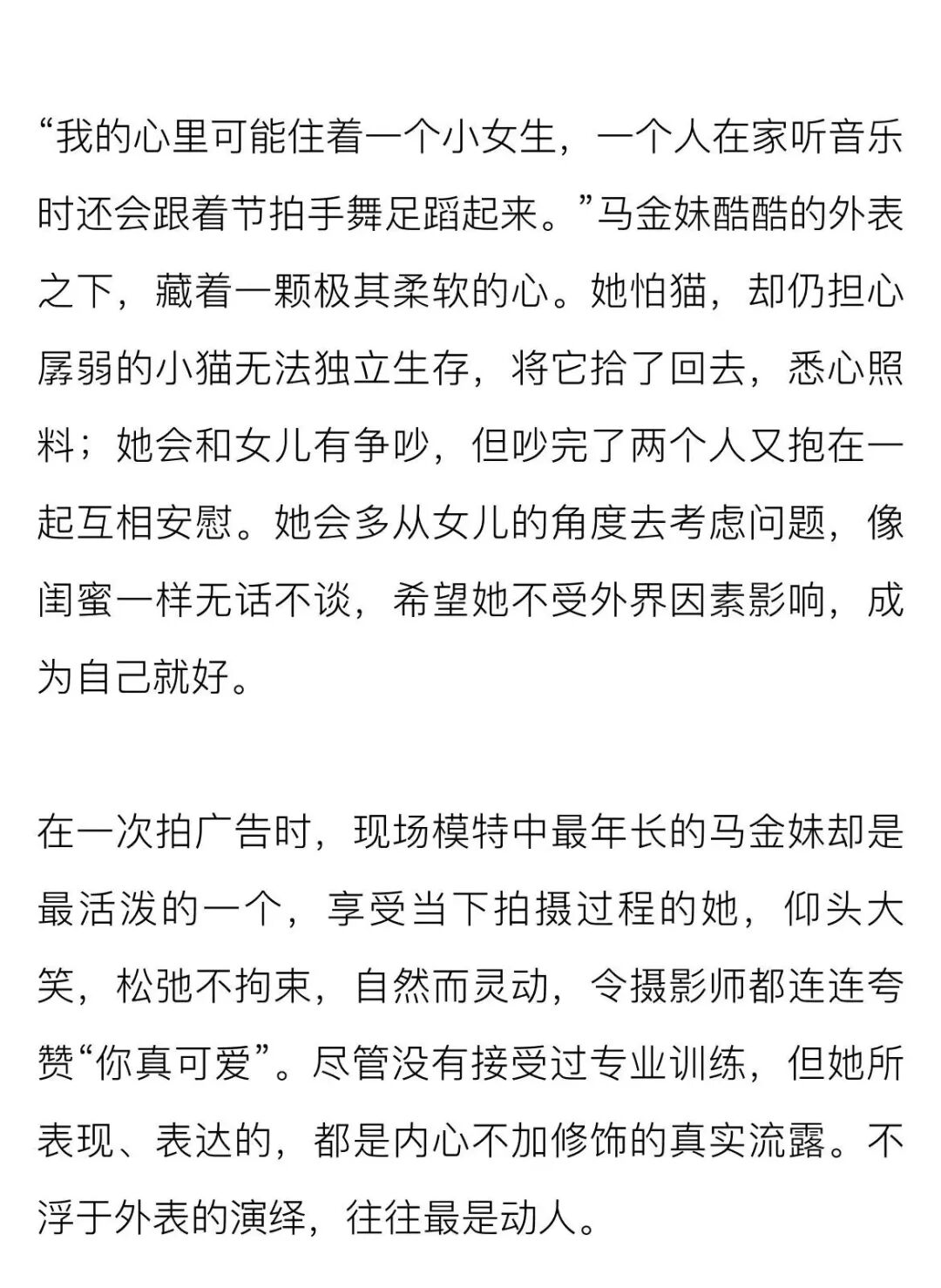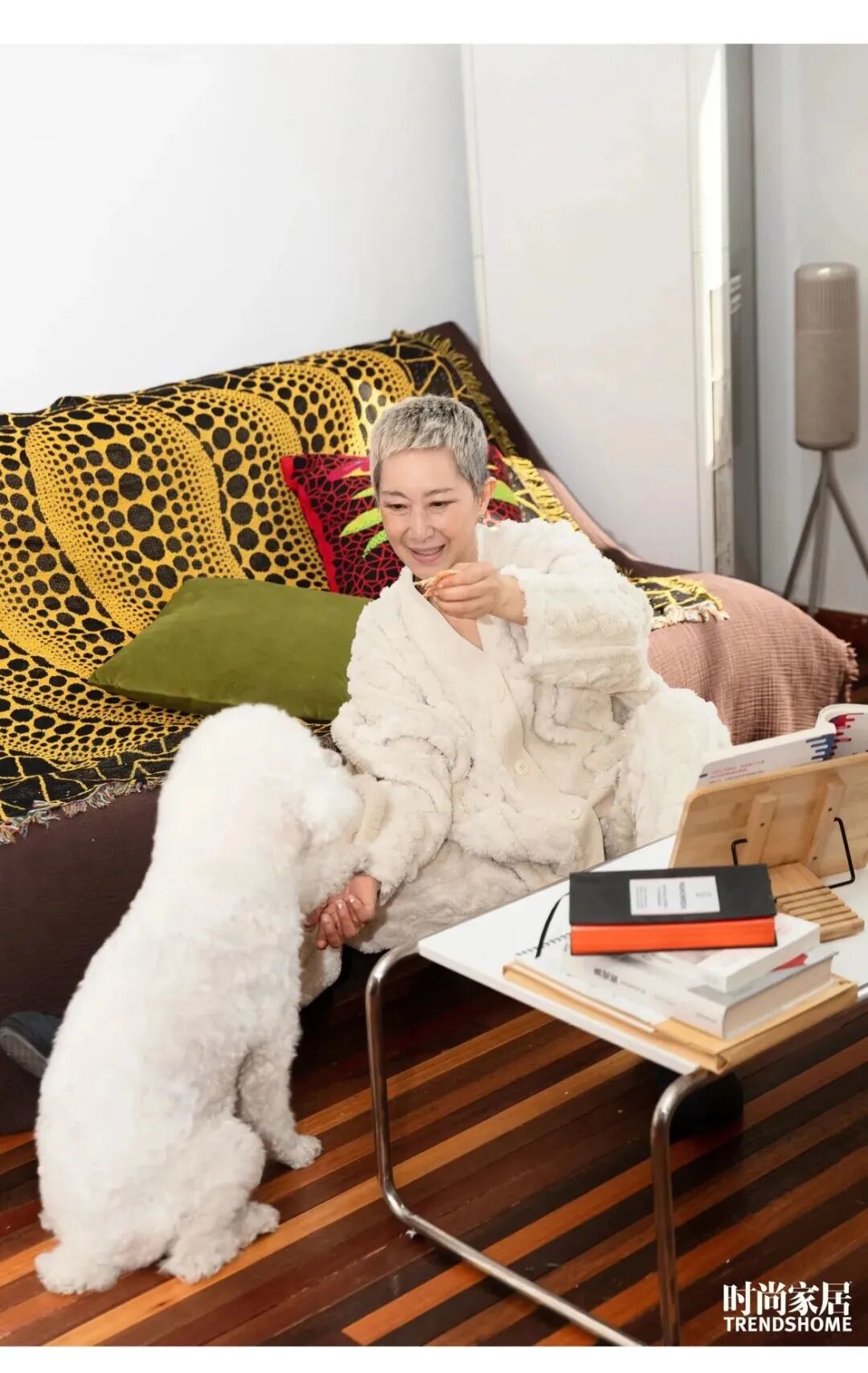 生活空間不必規整安排,但這也並不妨礙馬金妹追求生活的精緻與儀式感。她喜歡家裡的每一處空間,會泡在浴缸裡,點上一支香氛蠟燭,播放一首輕柔的音樂,自言自語,想象自己是在和大自然對話;會在客廳擺放一束明媚的鮮花,隨機放映一部中世紀的法國電影,讓自己恍若穿越時空;她也享受廚房的獨處時光,創造美味,也慰藉自己的胃與心……