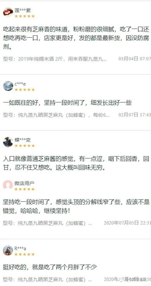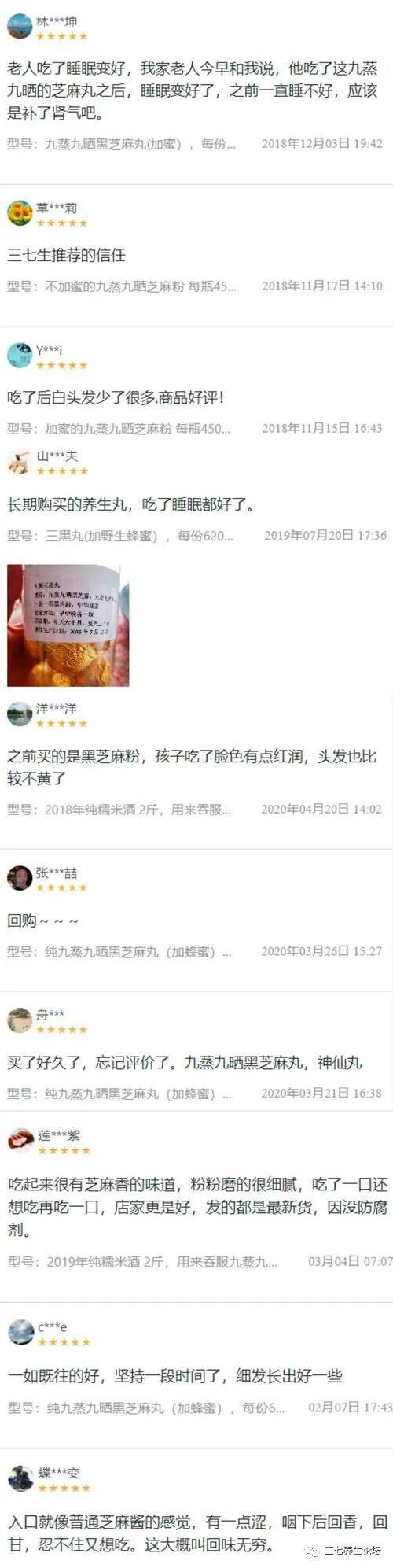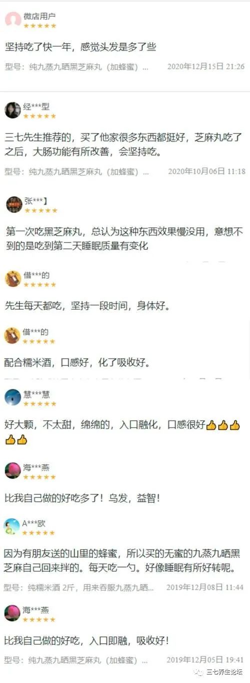 和味農耕生產製作的九蒸九曬黑芝麻丸,因產量有限,很少推廣,不過一直很受客戶群體的喜歡,一些客戶朋友的回饋供大家參考: